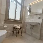Élvezze a Villa Heimlicher Grund hajszárítóval és fürdőlepedőkkel felszerelt fürdőszobájának kényelmét. Mi több, walk-in zuhanykabin és külön WC is van.
